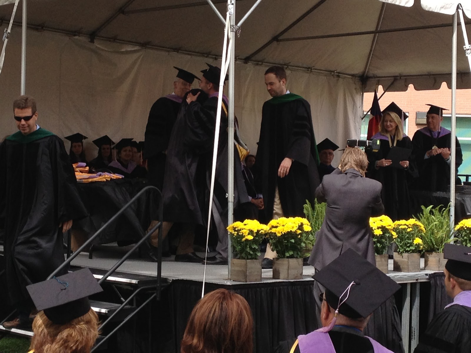 Because his brothers, Mark and Jeff are doctors they were able to hood him. He also has another brother who is a doctor and could have hooded him as well. We missed you Adam! |
